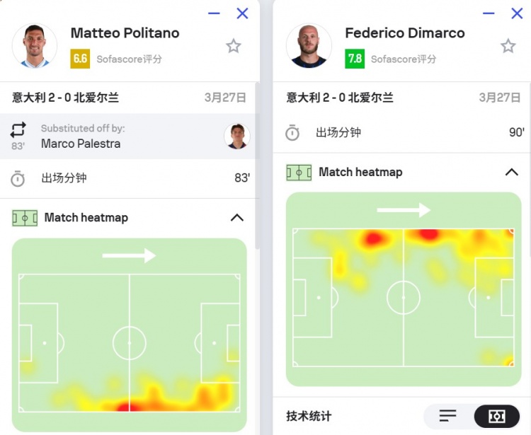 第一战对北爱尔兰虽然迪马尔科有过几次闪耀机会,不过整体上对比在国米差了不少。一方面是蓝黑军团在两路的机会不多,北爱扎篱笆防守导致他们只能被迫起传中,没有纵深机会去创造契机;另一方面是在中场分球时,迪马尔科参与的不够多。